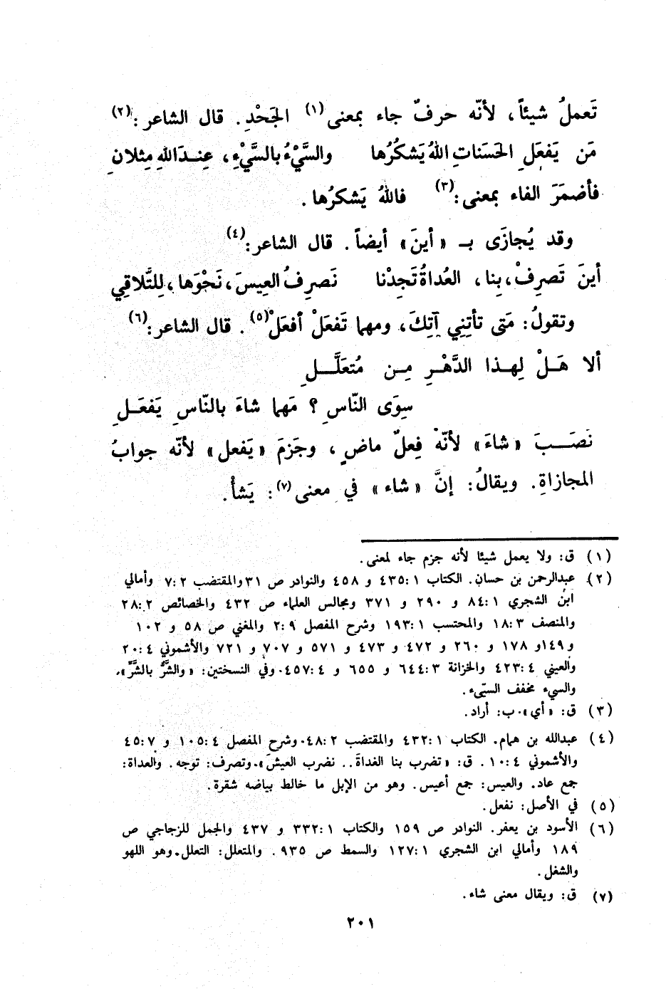 (ألا هل لهذا الدهر من متعلل ... سوى الناس مهما شاء بالناس يفعل) نصب شاء لأنه فعل ماض وجزم يفعل لأنه جواب المجازاة ويقال إن شاء في معنى يشأ
