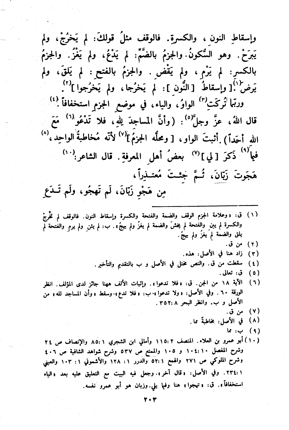 وربما تركت هذه الواو والياء في موضع الجزم استخفافا قال الله عز و جل ( وأن المساجد لله فلا تدعوا مع الله أحدا ) أثبت الواو ههنا ومحله الجزم لأنه مخاطبة الواحد فيما ذكر لي بعض أهل المعرفة قال الشاعر