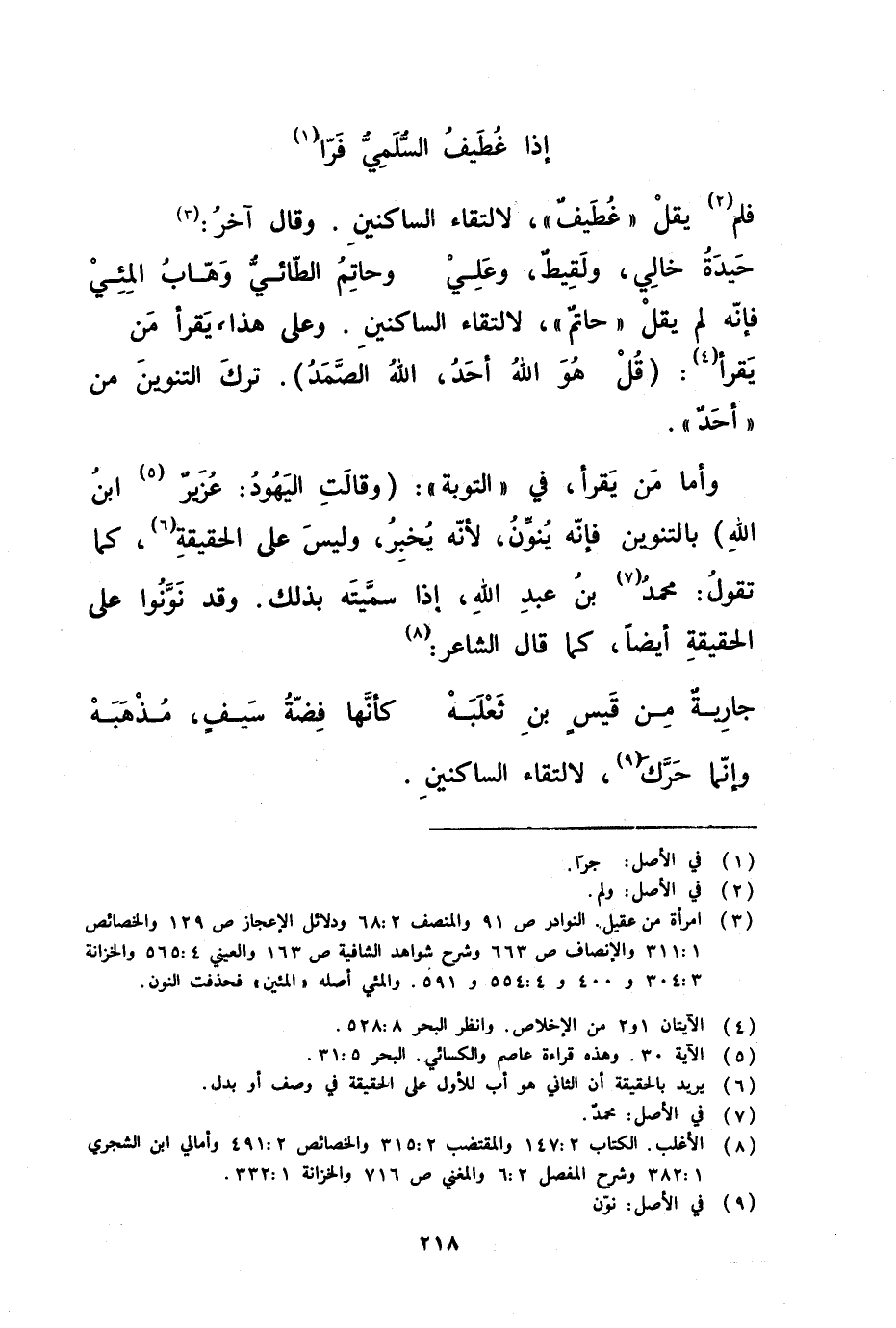 فإنه لم يقل حاتم لالتقاء الساكنين وعلى هذا يقرأ من يقرأ ( قل هو الله أحد الله الصمد ) ترك التنوين من أحد