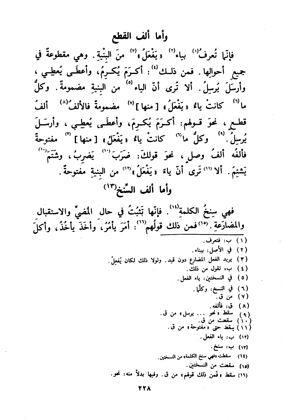 فإنما تعرف بياء يفعل من البنية وهي مقطوعة في جميع أحوالها فمن ذلك أكرم يكرم وأعطى يعطي وأرسل يرسل ألا ترى أن ياء الفعل من البنية مضمومة وكل ما كانت ياء يفعل منها مضمومة فألفه ألف قطع نحو قولهم أكرم يكرم وأعطى يعطي وأرسل يرسل وكل ما كانت ياء يفعل منها مفتوحة فألفه الف وصل نحو قولك ضرب يضرب وشتم يشتم ألا ترى أن ياء يفعل من البينة مفتوحة