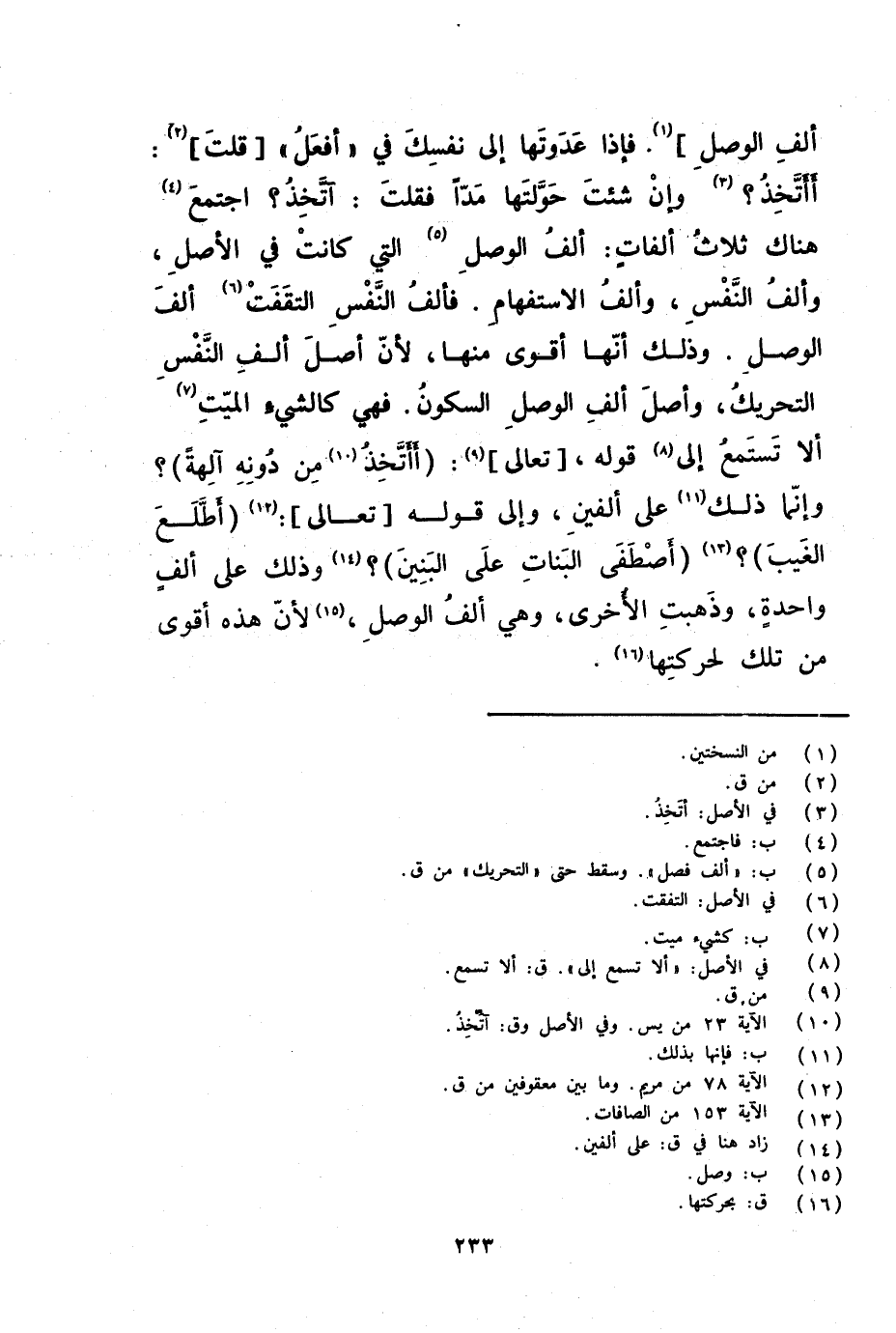 ألا تستمع إلى قوله تعالى ( أأتخذ من دونه آلهة ) وإنما ذلك على ألفين والى قوله تعالى ( أطلع الغيب ) ( اصطفى البنات على البنين ) وذلك على ألف واحدة وذهبت الأخرى وهي ألف الوصل لأن هذه أقوى من تلك لحركتها