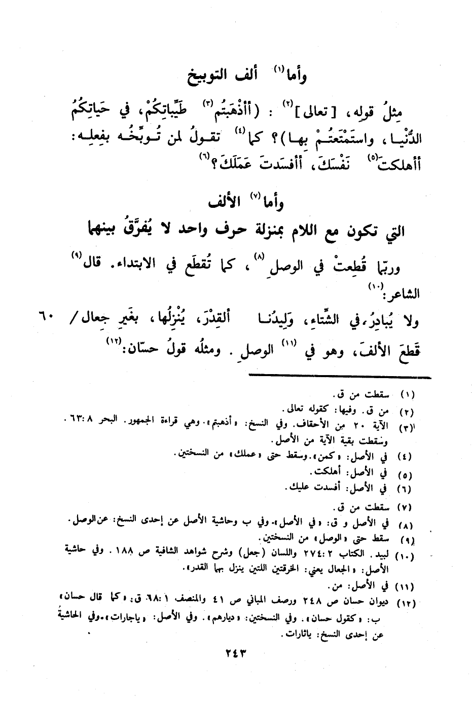وأما الألف التي تكون مع اللام بمنزلة حرف واحد