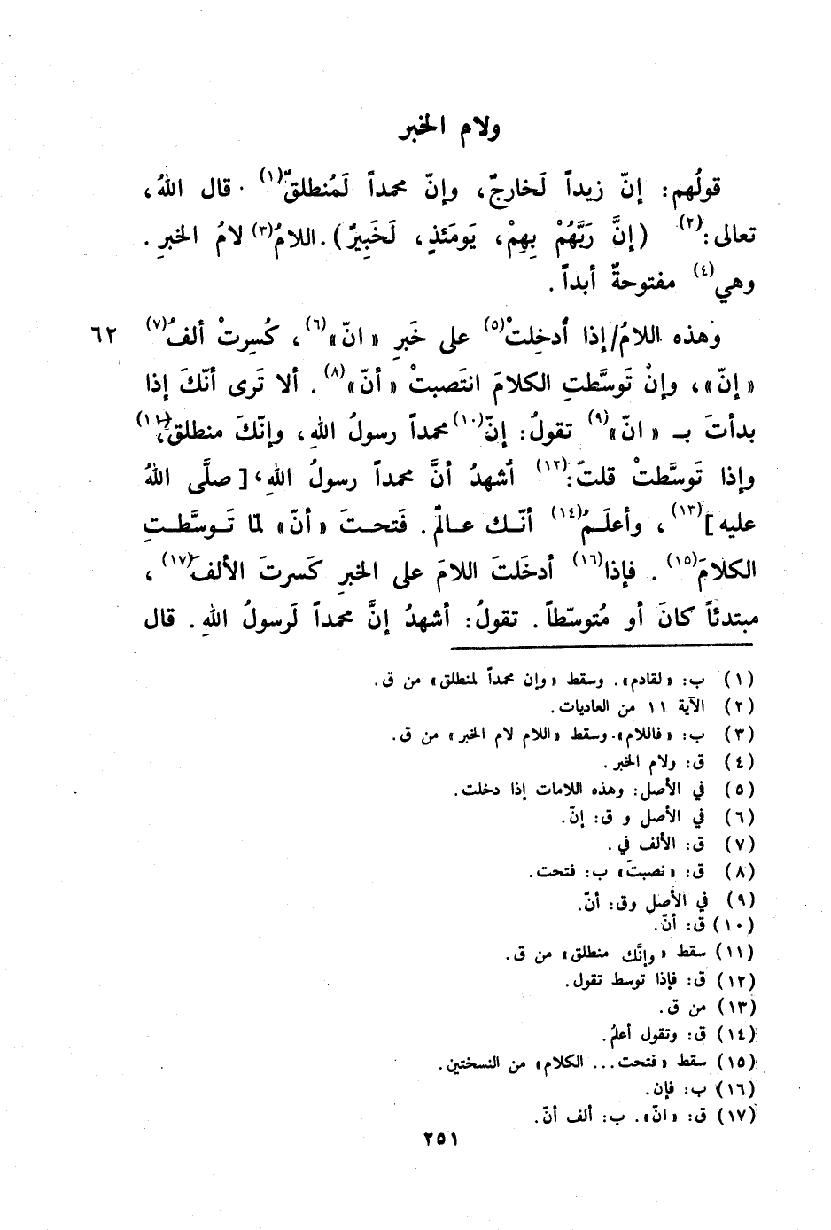 فإذا أدخلت اللام على الخبر كسرت الألف مبتدأ كان أو متوسطا تقول أن محمدا لرسول الله قال