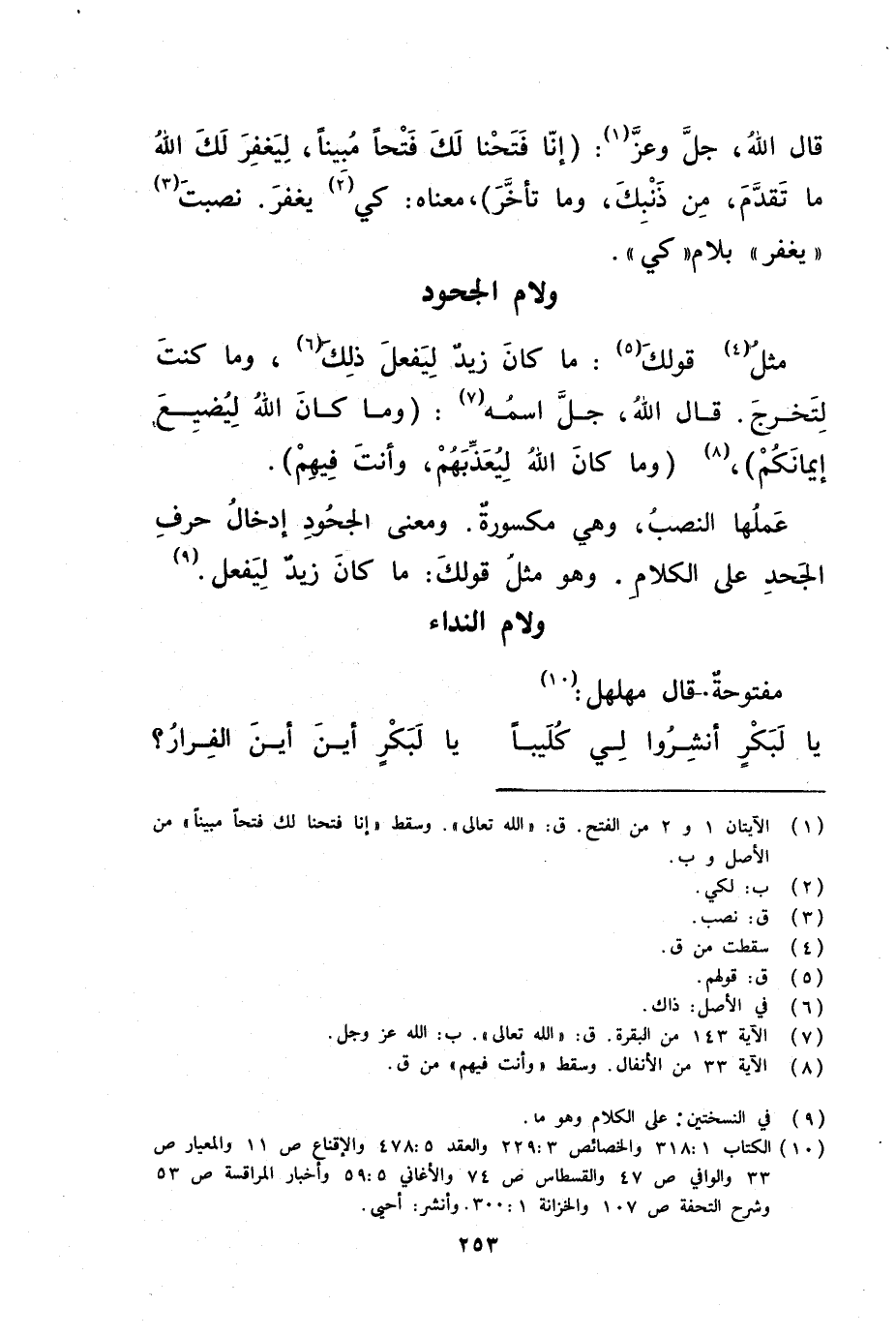 تفيدني قال الله جل وعز ( إنا فتحنا لك فتحا مبينا ليغفر لك الله ما تقدم من ذنبك وما تأخر ) معناه لكي يغفر لك الله نصبت يغفر بلام كي