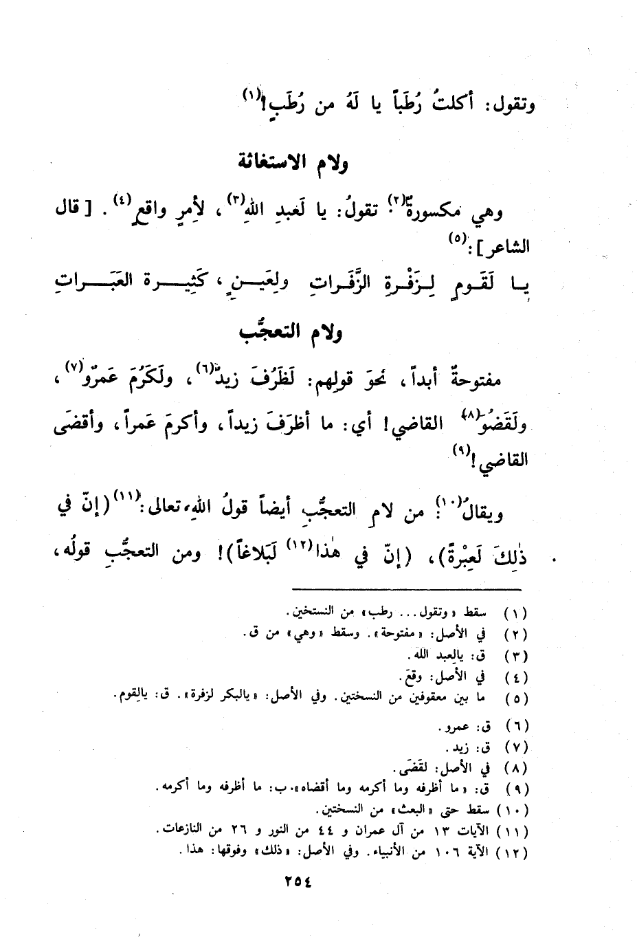 ويقال من لام التعجب أيضا قول الله تعالى ( إن في ذلك لعبرة ) ( أن في هذا لبلاغا ) ومن التعجب قوله