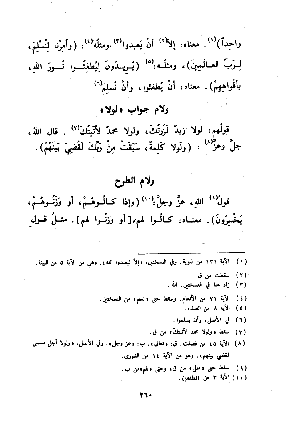 قولهم لولا زيد لزرتك ولولا محمد لأتيتك قال الله جل وعز ( ولولا كلمة سبقت من ربك لقضي بينهم )