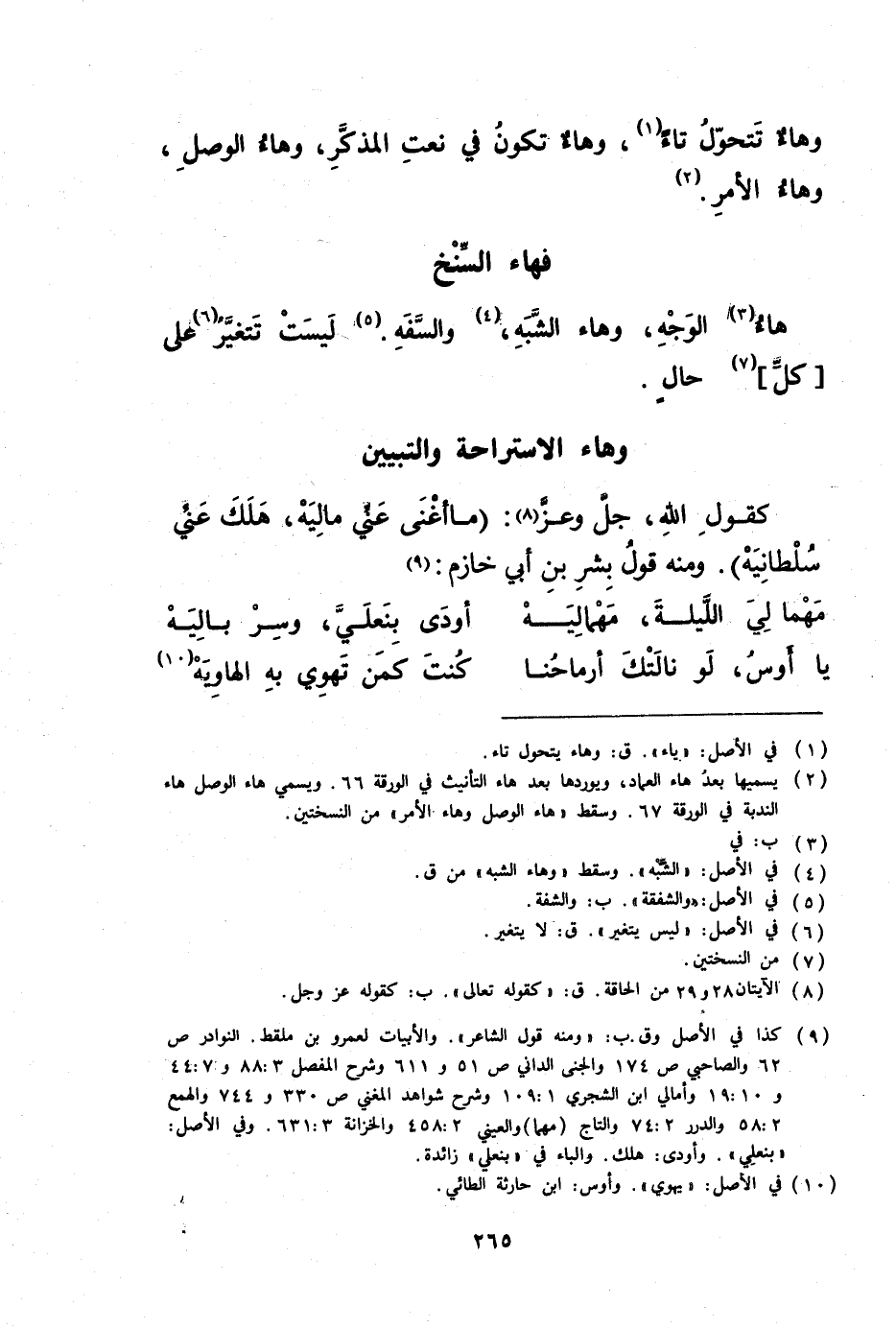 وهاء تتحول تاء وهاء تكون في نعت المذكر وهاء الوصل وهاء الأمر