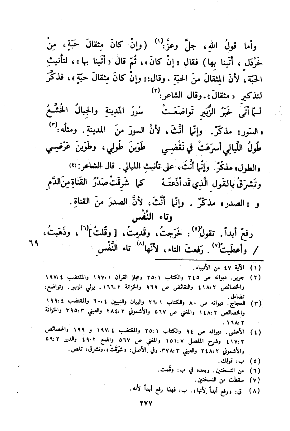 وأما قول الله جل وعز ( وإن كان مثقال حبة من خردل أتينا بها ) فقال ( إن كان ) ثم قال ( أتينا بها ) لتأنيث الحبة لأن المثقال من الحبة وقال و ( وإن كان مثقال حبة ) فذكر لتذكير ( مثقال )