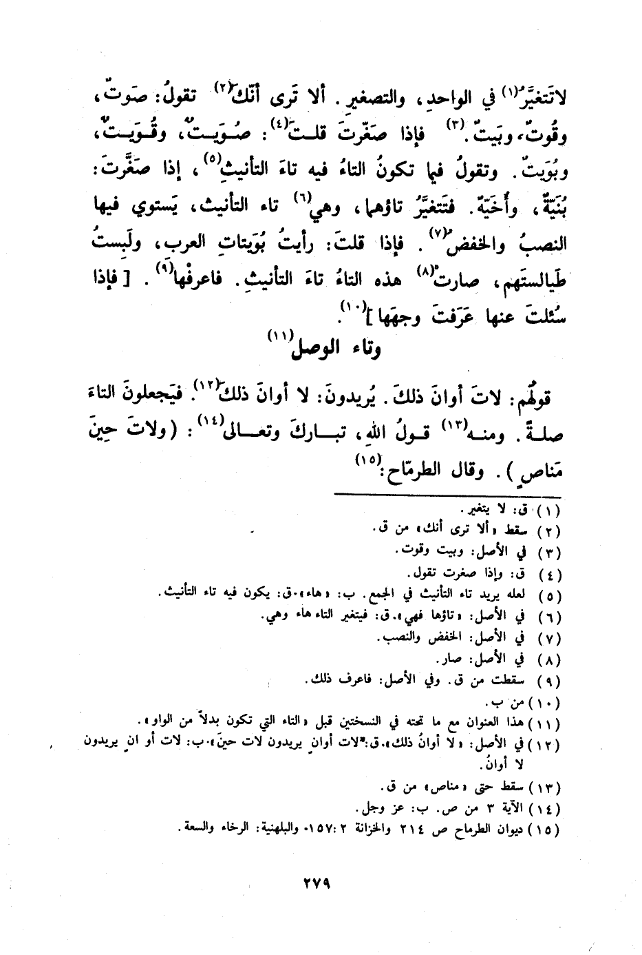 ألا ترى أنم تقول صوت وقوت وبيت فإذا صغرت قلت صويت وقويت وبويت وتقول فيما تكون التاء فيه تاء التأنيث إذا صغرت بنية وأخية فتتغير تاؤهما فهي تاء التأنيث يستوي فيها النصب والخفض فإذا قلت رأيت بيوتات العرب ولبست طيالستهم صارت هذه التاء تاء التأنيث فاعرفها فإذا سئلت عنها عرفت وجهها