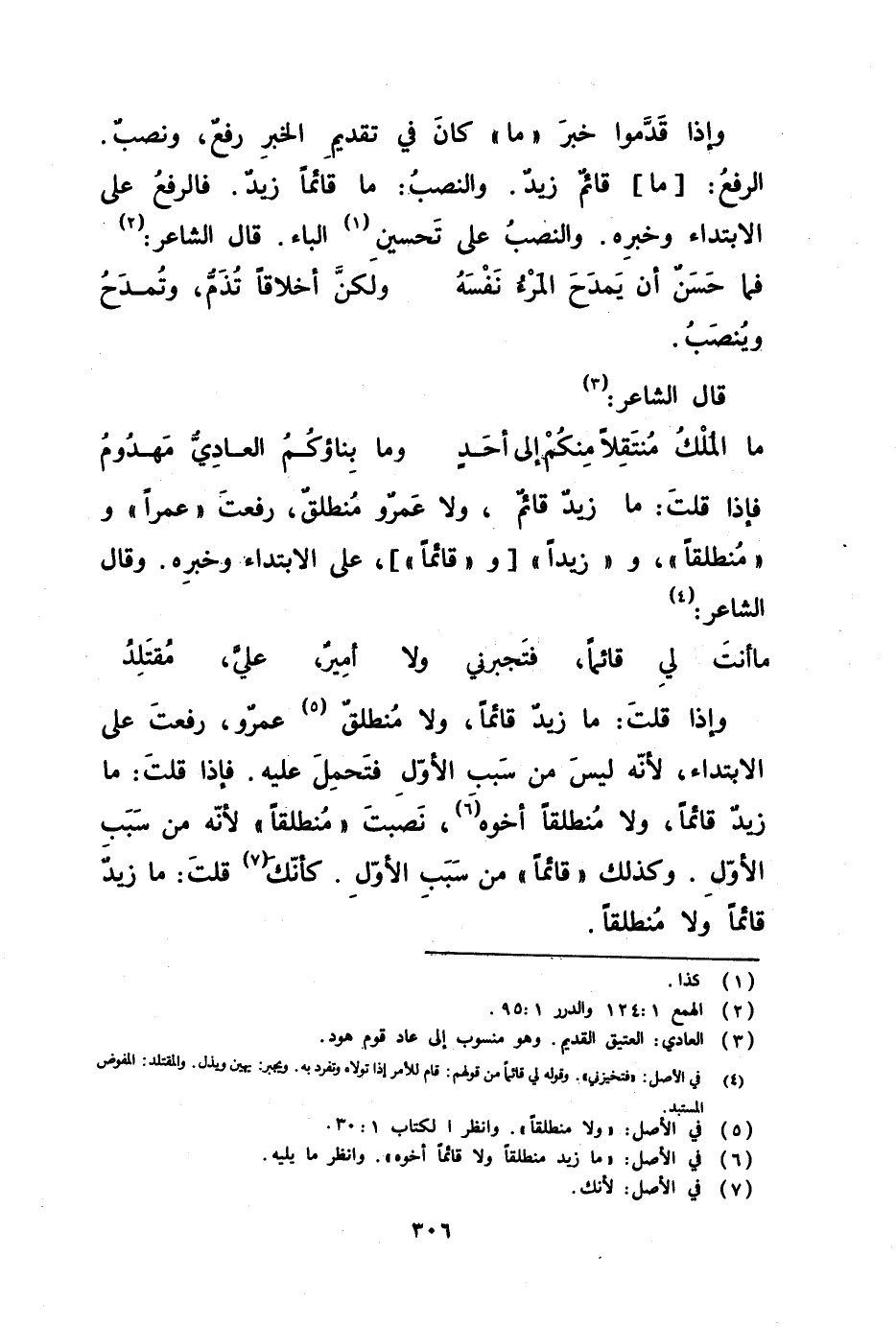 فإذا قلت ما زيد قائم ولا عمرو منطلق رفعت عمرا ومنطلقا وزيدا وقائما على الابتداء وخبره وقال الشاعر