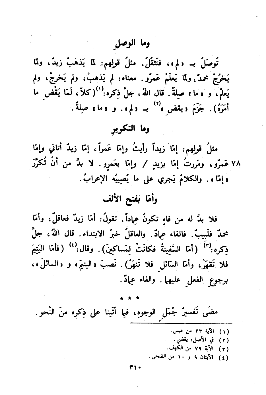 لمساكين ) وقال ( فأما اليتيم فلا تقهر وأما السائل فلا تنهر ) نصب اليتيم والسائل برجوع الفعل عليهما والفاء عماد