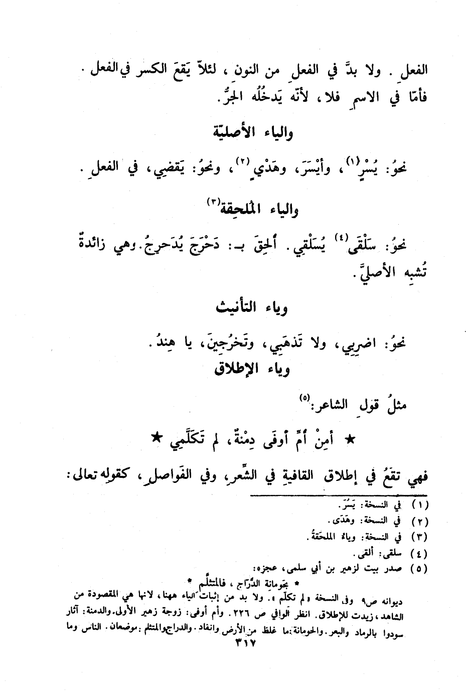 ( أمن أم أوفى دمنة لم تكلمي فهي تقع في إطلاق القافية في الشعر وفي الفواصل كقوله تعالى