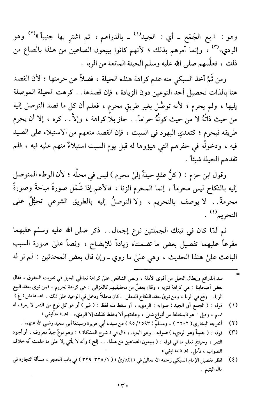 = سد الذرائع وإبطال الحيل من أقوى الأدلة، ونص الشافعي على كراهة تعاطي الحيل في تفويت الحقوق، فقال بعض أصحابنا: هي كراهة تنزيه، وقال بعضٌ من محقيقيهم كالغزالي: هي كراهة تحريم، فمن نوى بعقد البيع الربا. . وقع في الربا، ومن نوى بعقد النكاح التحلل. . كان محللًا ودخل في الوعيد على ذلك. اهـ هامش (غ)