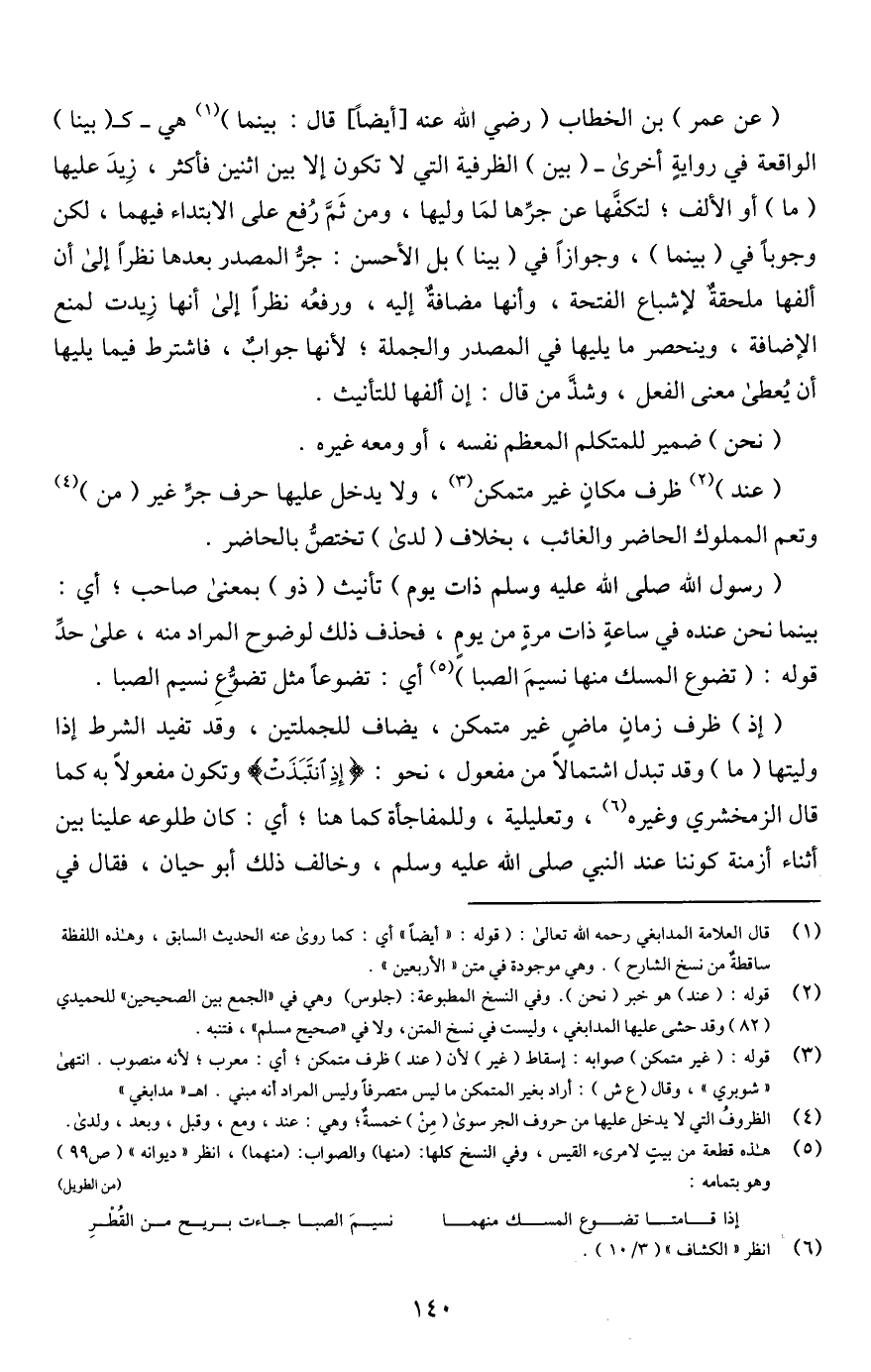 (إذ) ظرف زمانٍ ماضٍ غير متمكن، يضاف للجملتين، وقد تفيد الشرط إذا وليتها (ما) وقد تبدل اشتمالًا من مفعول، نحو: {إِذِ اَنتَبَذَت} وتكون مفعولًا به كما قال الزمخشري وغيره (¬6)، وتعليلية، وللمفاجأة كما هنا؛ أي: كان طلوعه علينا بين أثناء أزمنة كوننا عند النبي صلى اللَّه عليه وسلم، وخالف ذلك أبو حيان، فقال في