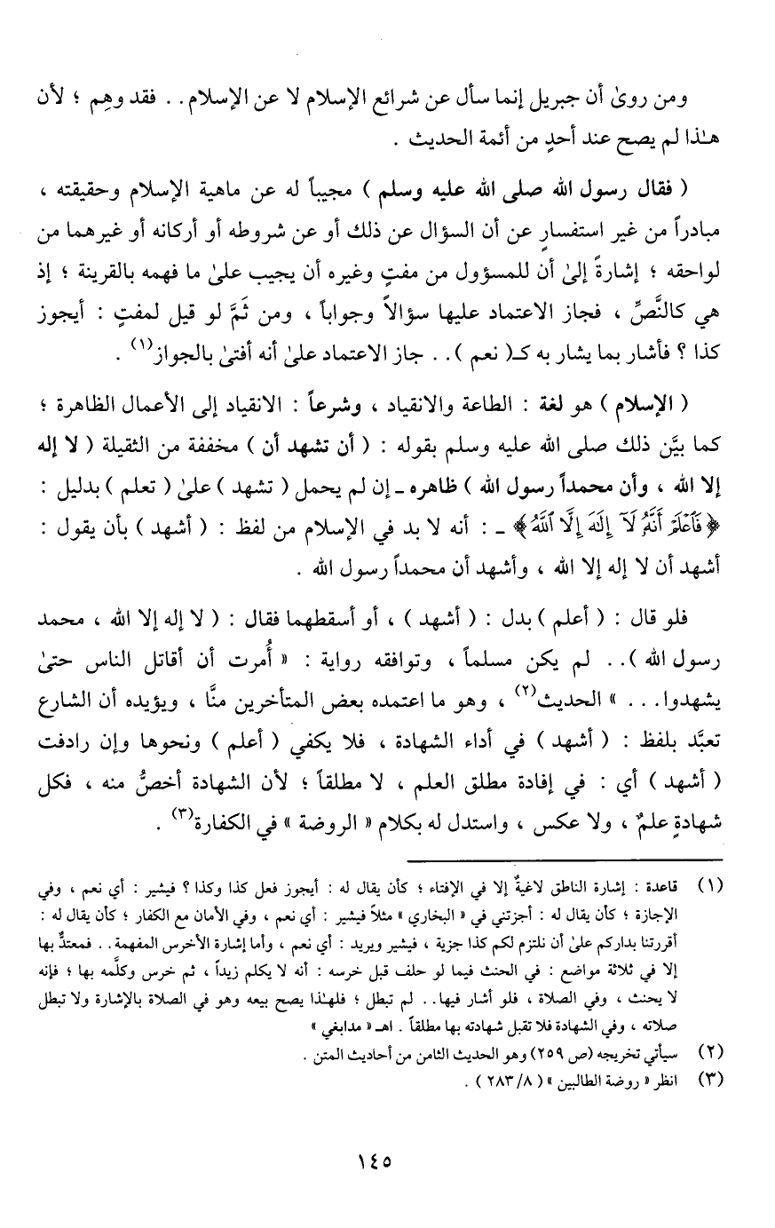 ومن روى أن جبريل إنما سأل عن شرائع الإسلام لا عن الإسلام. . فقد وهِم؛ لأن هذا لم يصح عند أحدٍ من أئمة الحديث.