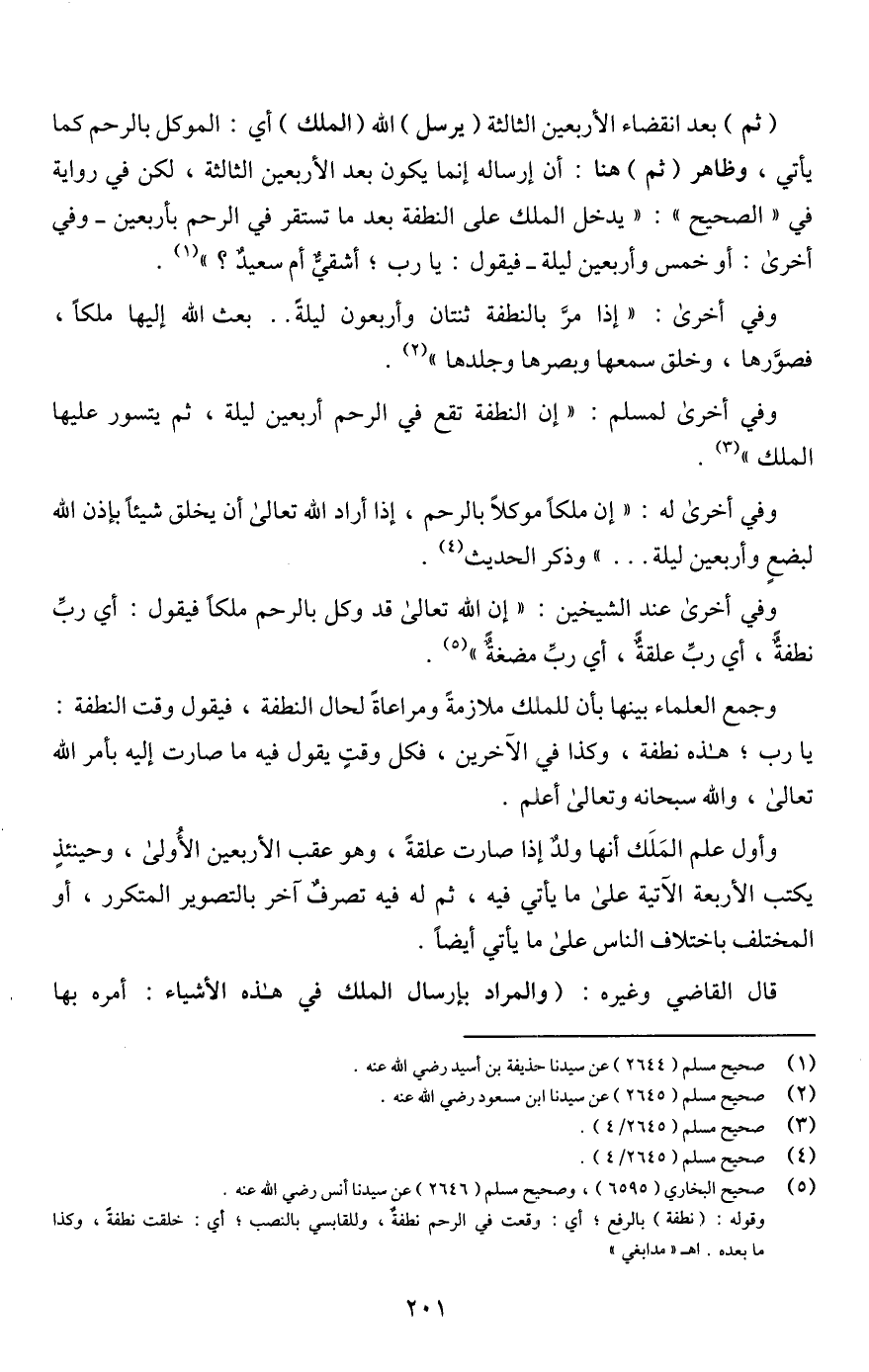 وفي أخرى عند الشيخين: "إن اللَّه تعالى قد وكل بالرحم ملكًا فيقول: أي ربِّ نطفةٌ، أي ربِّ علقةٌ، أي ربِّ مضغةٌ" (¬5).