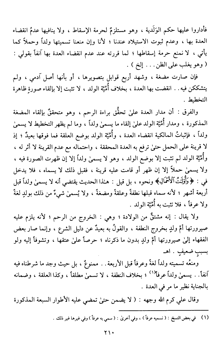 ولا يقال: إنه مشتقٌّ من الولادة؛ وهي: الخروج من الرحم؛ لأنه يلزم عليه صيرورتها أمَّ ولدٍ بخروج النطفة، والقولُ به بعيدٌ عن دليل الشرع، وإنما صار بعض الفقهاء إلى صيرورتها أُمِّ ولدٍ بدون ما ذكرناه؛ حرصًا على عتقها، وتشوفًا إليه ولو بسببٍ ضعيفٍ. اهـ