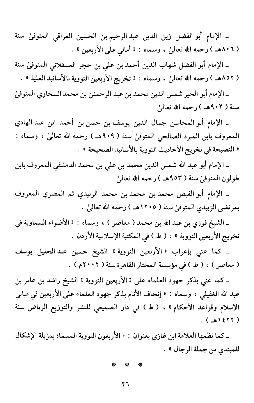 - الإمام أبو الفضل زين الدين عبد الرحيم بن الحسين العراقي المتوفى سنة (806 هـ) رحمه اللَّه تعالى، وسماه: "أمالي على الأربعين".