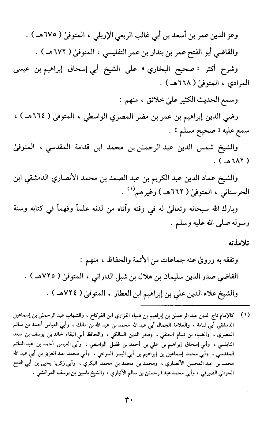 والشيخ علاء الدين علي بن إبراهيم ابن العطار، المتوفى (724 هـ).