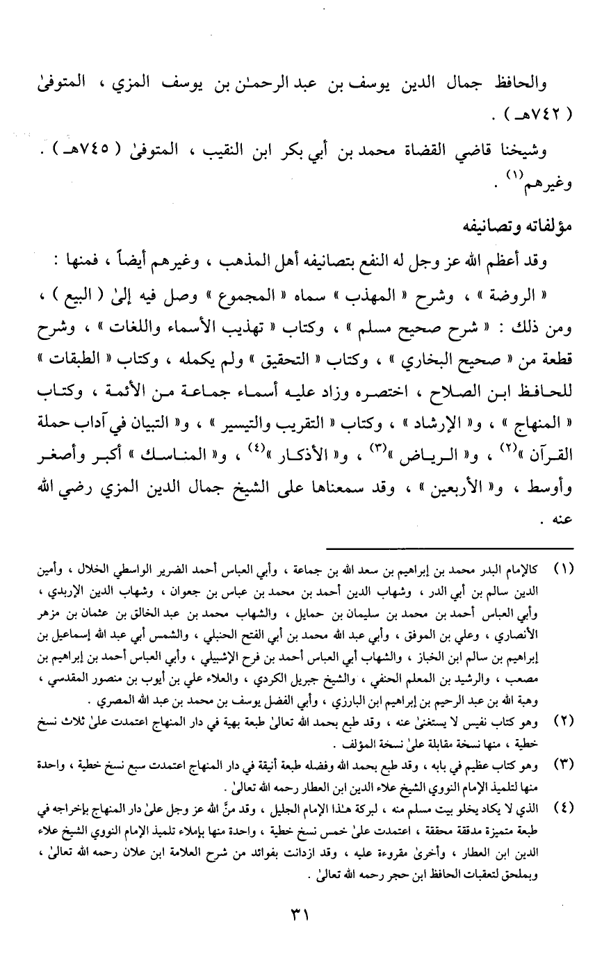 (¬3) وهو كتاب عظيم في بابه، وقد طبع بحمد اللَّه وفضله طبعة أنيقة في دار المنهاج اعتمدت سبع نسخ خطية، واحدة منها لتلميذ الإمام النووي الشيخ علاء الدين ابن العطار رحمه اللَّه تعالى.