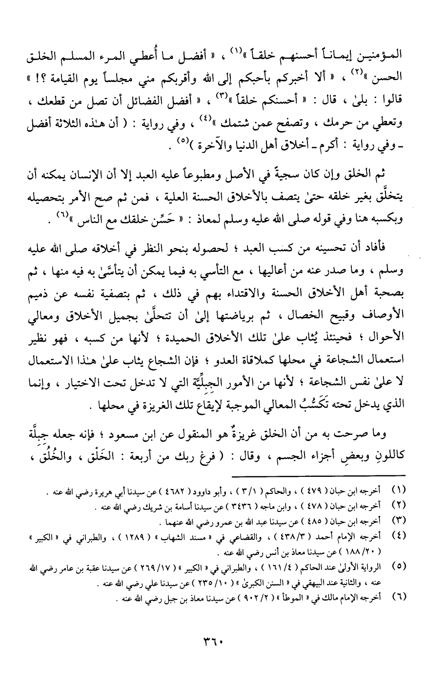 ثم الخلق وإن كان سجيةً في الأصل ومطبوعًا عليه العبد إلا أن الإنسان يمكنه أن يتخلَّق بغير خلقه حتى يتصف بالأخلاق الحسنة العلية، فمن ثم صح الأمر بتحصيله وبكسبه هنا وفي قوله صلى اللَّه عليه وسلم لمعاذ: "حَسِّن خلقك مع الناس" (¬6).