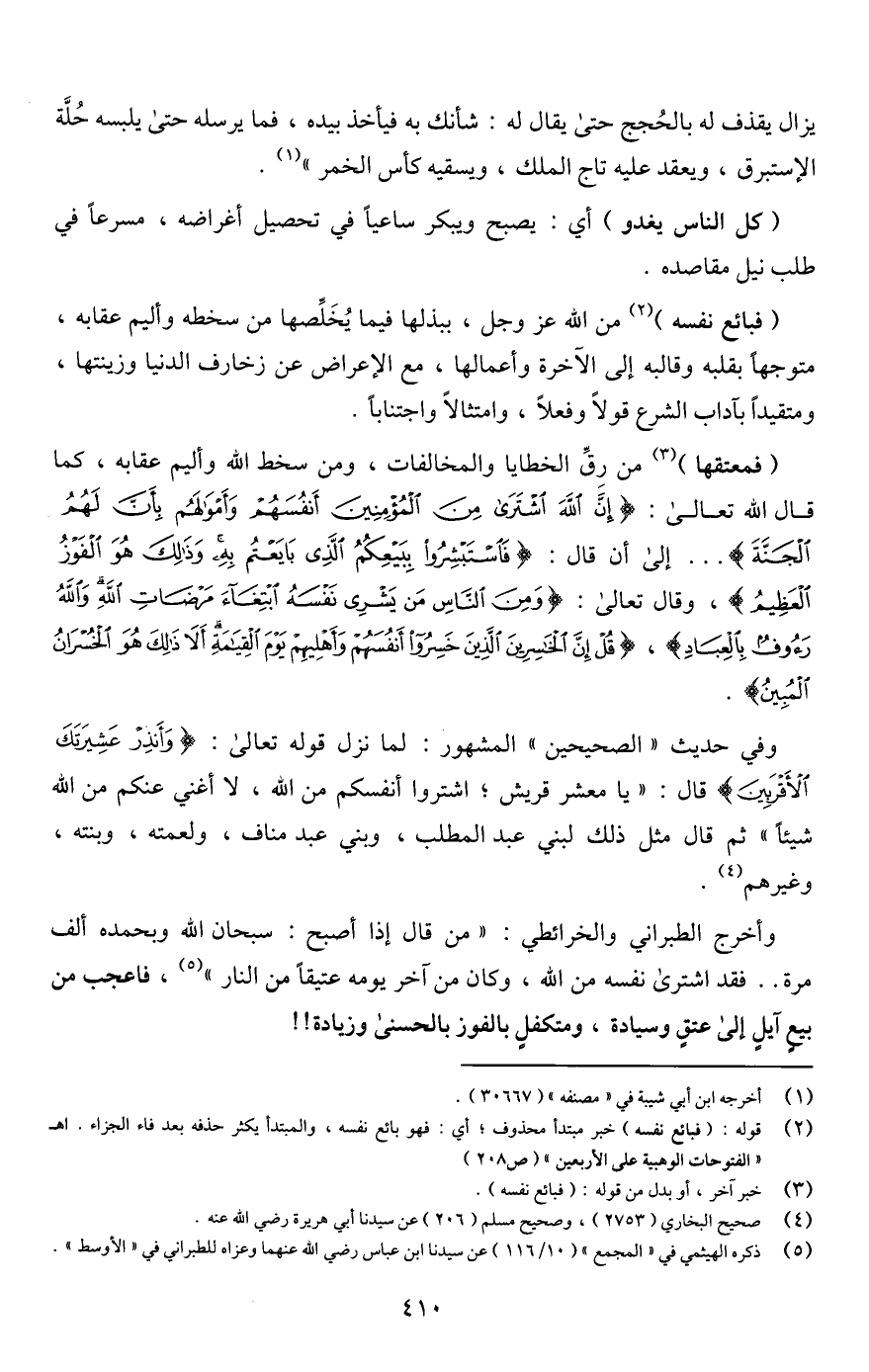 (¬2) قوله: (فبائع نفسه) خبر مبتدأ محذوف؛ أي: فهو باثع نفسه، والمبتدأ يكثر حذفه بعد فاء الجزاء. اهـ "الفتوحات الوهبية على الأربعين" (ص 208)
