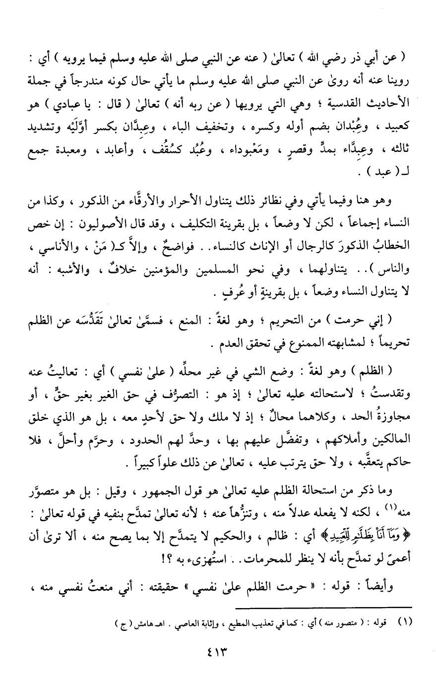 وأيضًا: قوله "حرمت الظلم على نفسي" حقيقته: أني منعتُ نفسي منه،