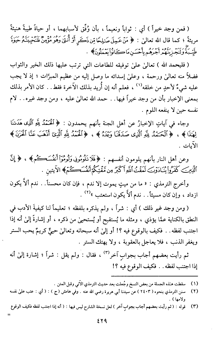 (¬2) سنن الترمذي بنحوه (2403) عن سيدنا أبي هريرة رضي اللَّه عنه. وفي هامش (ج): (أي: عتب على نفسه ولامها).