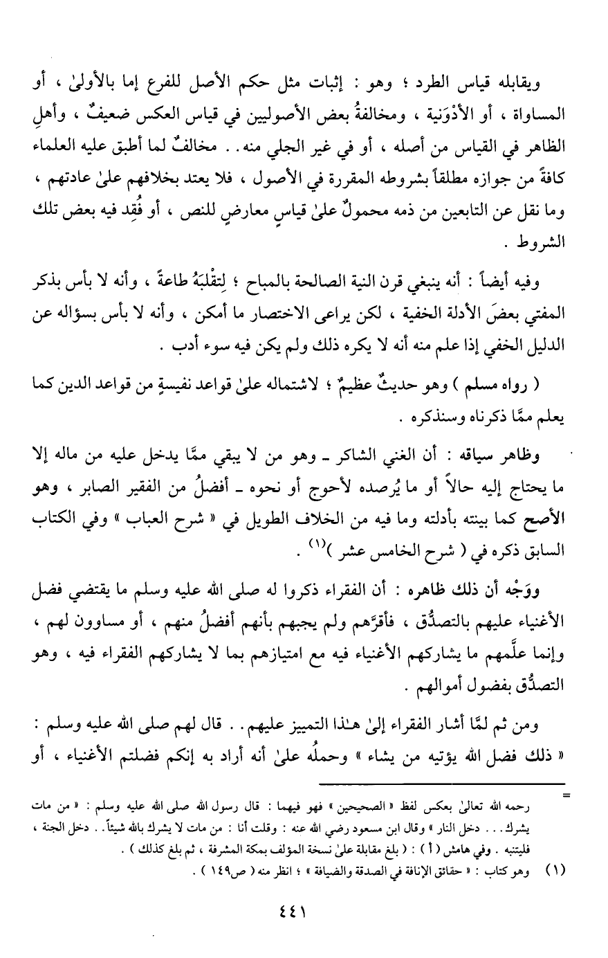 ووَجْه أن ذلك ظاهره: أن الفقراء ذكروا له صلى اللَّه عليه وسلم ما يقتضي فضل الأغنياء عليهم بالتصدُّق، فأقرَّهم ولم يجبهم بأنهم أفضلُ منهم، أو مساوون لهم، وإنما علَّمهم ما يشاركهم الأغنياء فيه مع امتيازهم بما لا يشاركهم الفقراء فيه، وهو التصدُّق بفضول أموالهم.