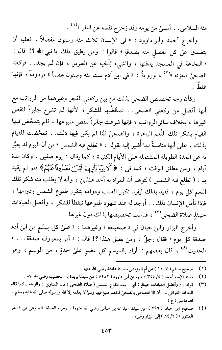 (¬3) قوله: (وأفضل العبادات حينئذٍ) أي: بعد طلوع الشمس (صلاة الضحى) قال المناوي: والوجه -كما قاله الحافظ العراقي-: أن الاختصاص بالضحى لخصوصيةٍ فيها وسرٍّ لا يعلمه إلا اللَّه ورسوله صلى اللَّه عليه وسلم. اهـ هامش (غ)