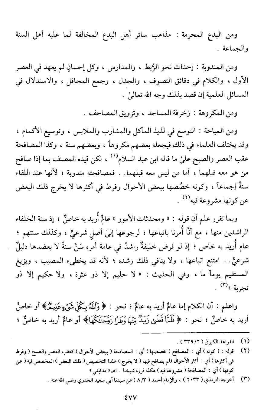 (¬2) قوله: (كونه) أي: المصافح (خصصها) أي: المصافحة (ببعض الأحوال) كعقب العصر والصبح (وفرط في أكثرها) أي: أكثر الأحوال فلم يصافح فيها (لا يخرج) هذا التخصيص (ذلك البعض) المخصص فيه (عن كونها) أي: المصافحة (مشروعة فيه) هكذا قرره شيخنا. اهـ "مدابغي"