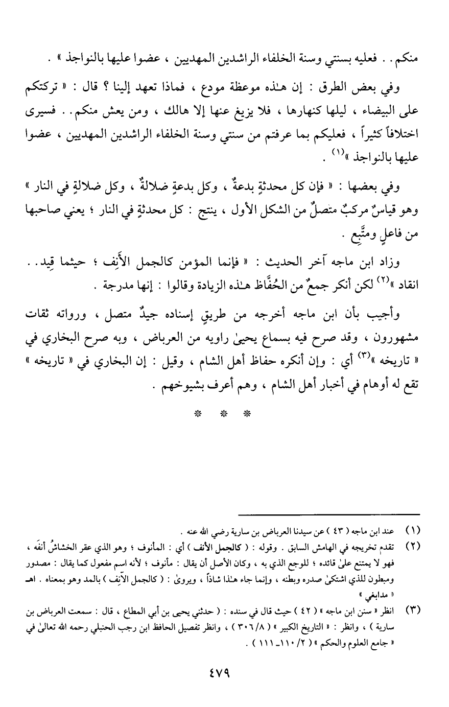 (¬1) عند ابن ماجه (43) عن سيدنا العرباض بن سارية رضي اللَّه عنه.