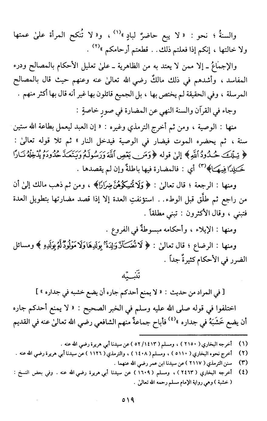 وجاء في القرآن والسنة النهي عن المضارة في صورٍ خاصةٍ: