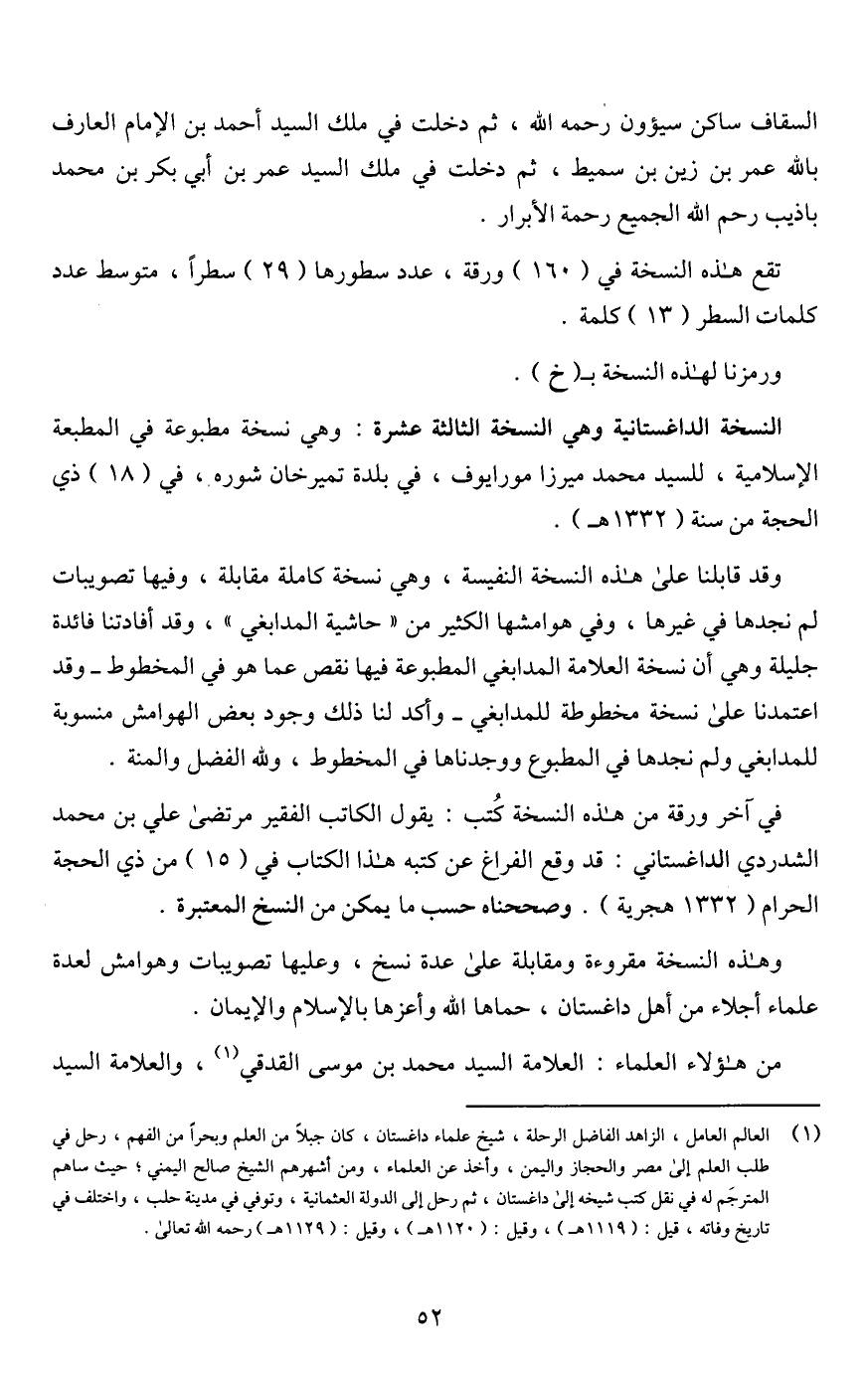وهذه النسخة مقروءة ومقابلة على عدة نسخ، وعليها تصويبات وهوامش لعدة علماء أجلاء من أهل داغستان، حماها اللَّه وأعزها بالإسلام والإيمان.