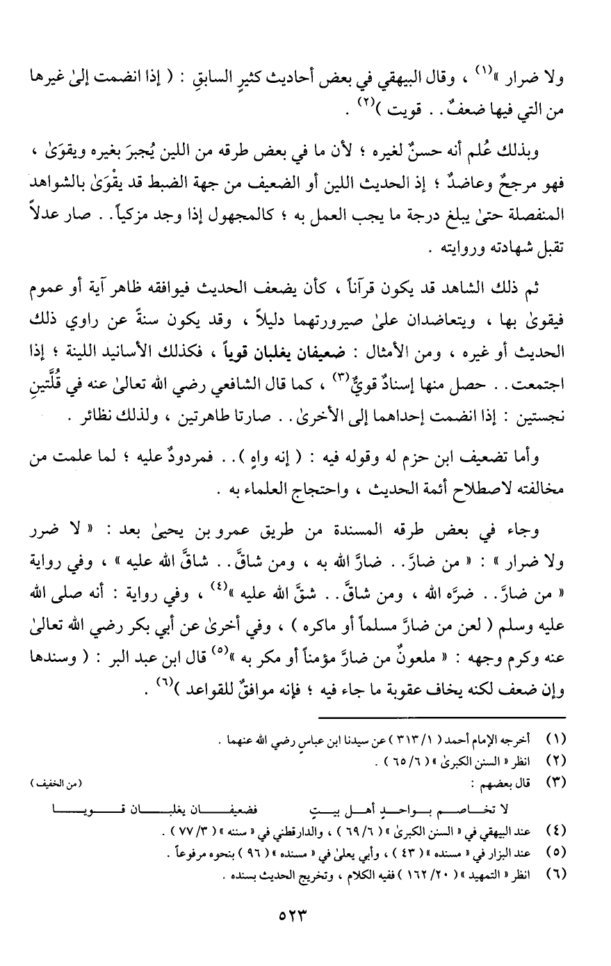 ولا ضرار" (¬1)، وقال البيهقي في بعض أحاديث كثيرٍ السابقِ: (إذا انضمت إلى غيرها من التي فيها ضعفٌ. . قويت) (¬2).