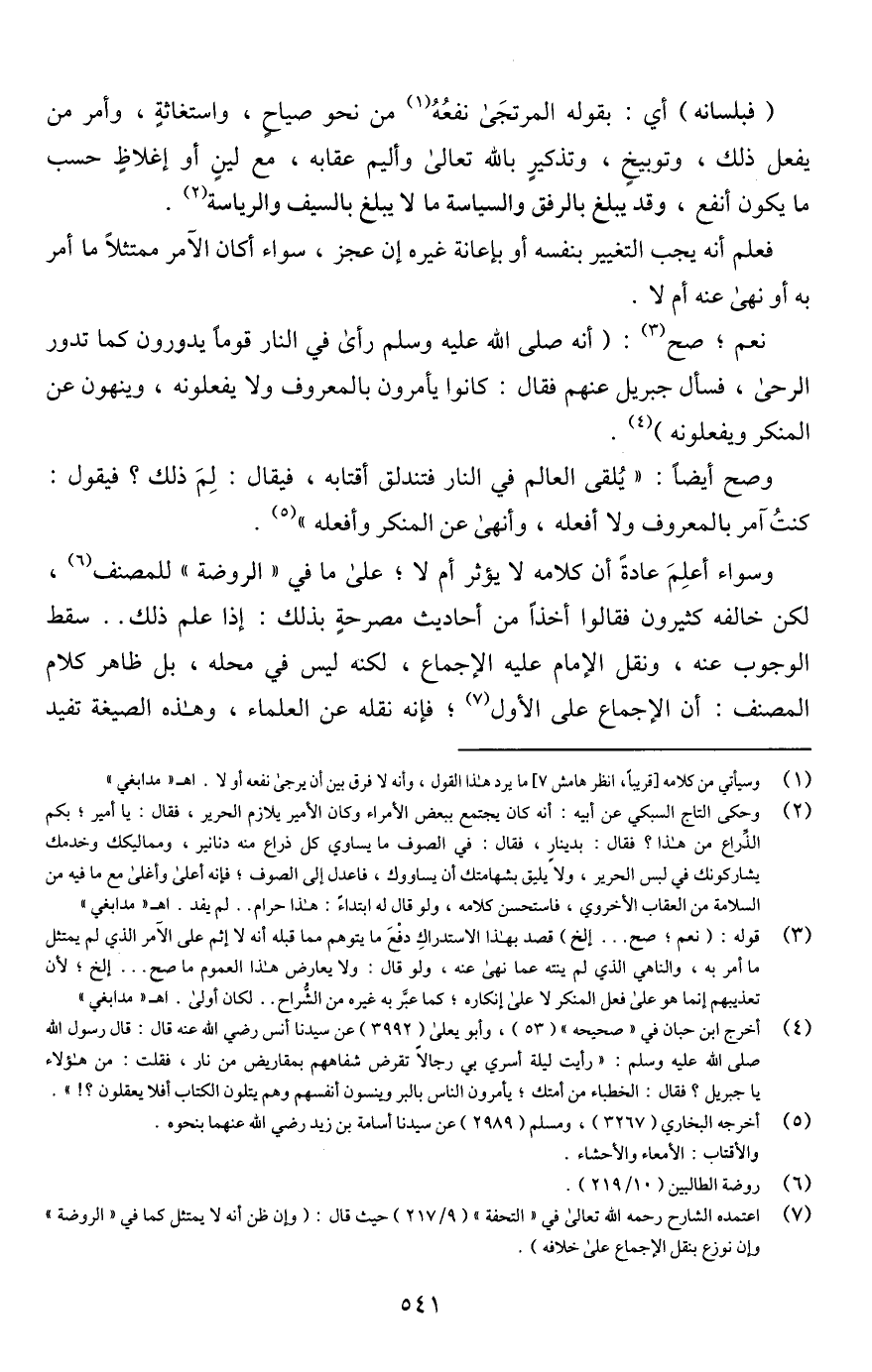 (¬3) قوله: (نعم؛ صح. . . إلخ) قصد بهذا الاستدراكِ دفْعَ ما يتوهم مما قبله أنه لا إثم على الآمر الذي لم يمتثل ما أمر به، والناهي الذي لم ينته عما نهى عنه، ولو قال: ولا يعارض هدا العموم ما صح. . . إلخ؛ لأن تعذيبهم إنما هو على فعل المنكر لا على إنكاره، كما عبَّر به غيره من الشُّراح. . لكان أولى. اهـ "مدابغي"