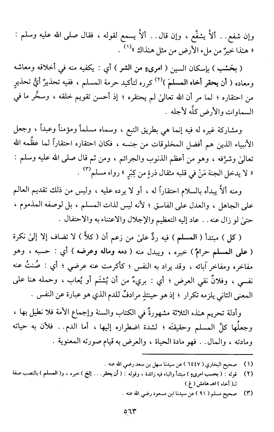 (¬2) قوله: (بحسب امرئٍ) مبتدأ والباء فيه زائدة، وقوله: (أن يحقر. . . إلخ) خبره، و (المسلم) بالنصب صفة لـ (أخاه) اهـ هامش (غ)