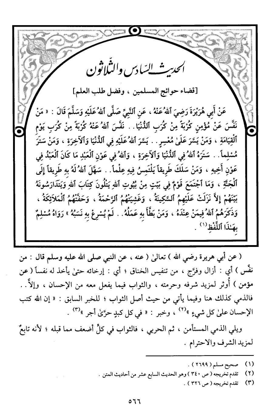 الحديث السادس والثلاثون [قضاء حوائج المسلمين، وفضل طلب العلم]