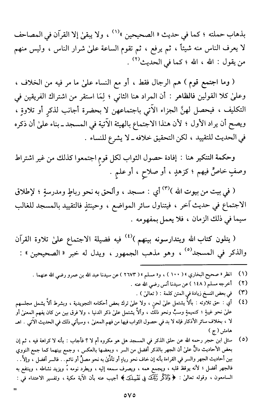 (¬4) أي: حق تلاوته: بألَّا يشتمل على لحنٍ، ولا على ترك بعض أحكامه التجويدية، وبشرط ألَّا يشمل مجلسهم على نحو غيبةٍ؛ كنميمةٍ وسبٍّ ونحو ذلك، وألَّا يشتمل على ذكر الدنيا، ولا فرق بين من كان يفهم المعنى أو لا، بخلاف سائر الأذكار فإنه لا بد في حصول الثواب فيها من فهم المعنى، وسيأتي ذلك في الحديث الآتي. اهـ هامش (ج)