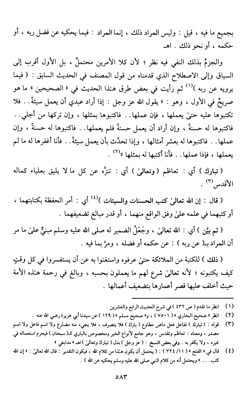 (¬4) قال في "الفتح" (11/ 324): (يحتمل أن يكون هذا من كلام اللَّه، فيكون التقدير: قال اللَّه تعالى: "إن اللَّه كتب. . . " ويحتمل أنه من كلام النبي صلى اللَّه عليه وسلم يحكيه عن اللَّه).