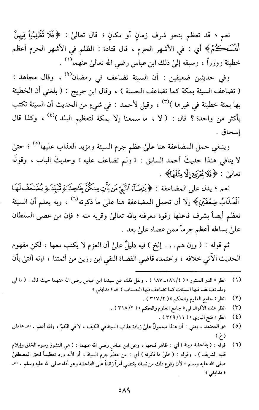 (¬1) انظر "الدر المنثور" (4/ 186 - 187). ونقل ذلك عن سيدنا ابن عباس رضي اللَّه عنهما حيث قال: (ما لي وبلد تضاعف فيها السيئات كما تضاعف فيها الحسنات) اهـ "مدابغي"