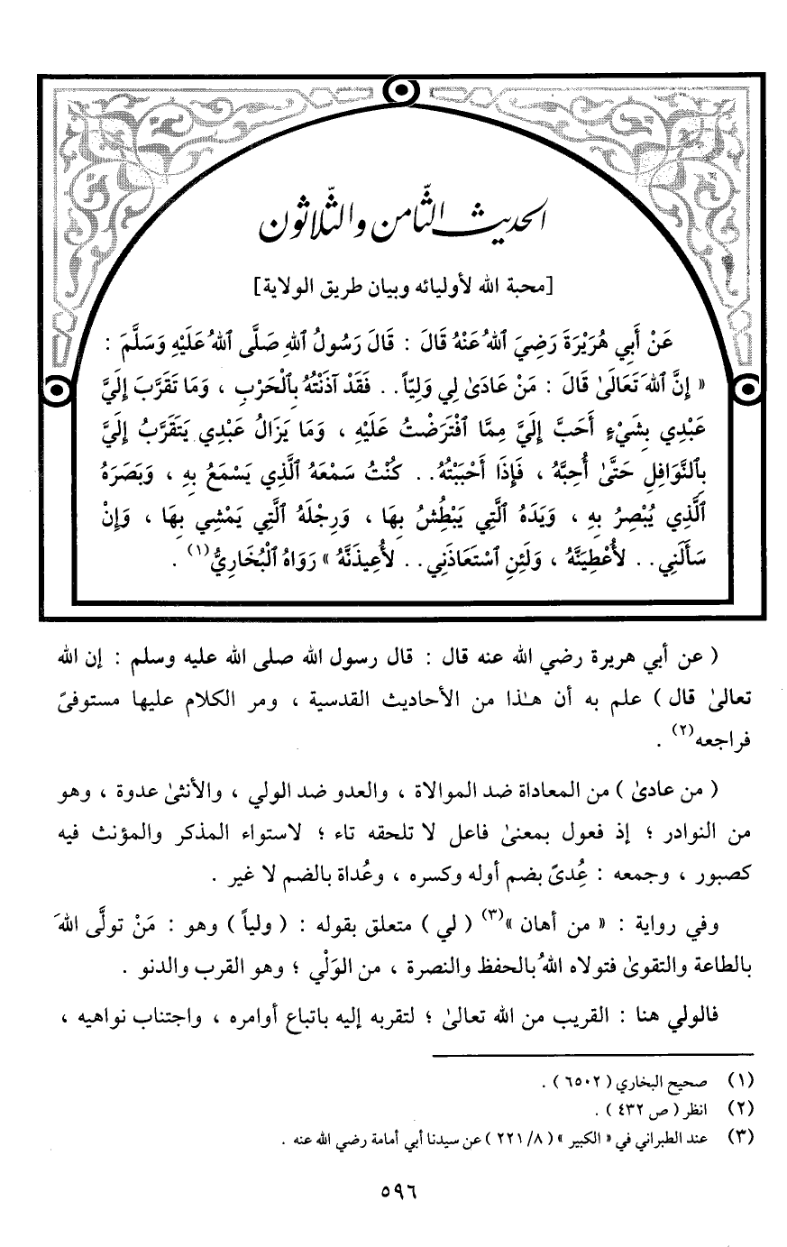الحديث الثامن والثلاثون [محبة اللَّه لأوليائه وبيان طريق الولاية]