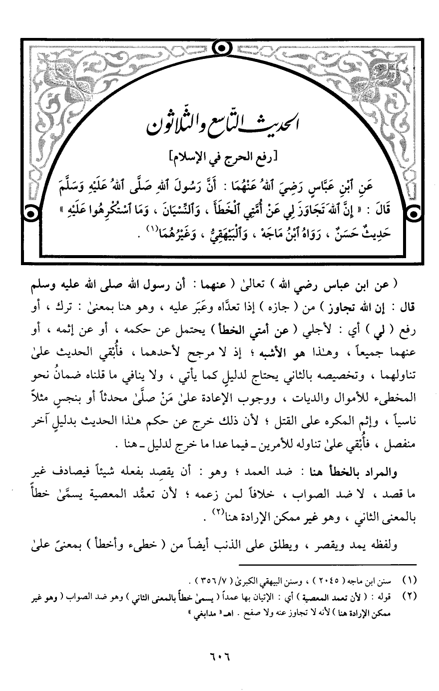 الحديث التاسع والثلاثون [رفع الحرج في الإسلام]