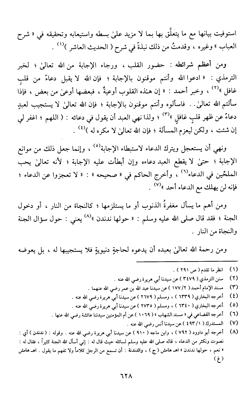 (¬8) أخرجه أبو داوود (792)، وابن ماجه (910) عن سيدنا أبي هريرة رضي اللَّه عنه. وقوله: (ندندن) أي: نصوت ونكثر من الدعاء، قاله صلى اللَّه عليه وسلم لسائله حيث قال له: إني أسأل اللَّه الجنة كثيرًا، فقال له: "نعم؛ حولها ندندن" اهـ هامش (ج)، والدندنة: أن تسمع من الرجل كلامًا ولا تفهم ما يقول. اهـ هامش (غ).