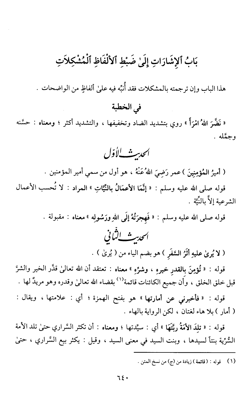قوله صلى اللَّه عليه وسلم: "إنَّمَا الأَعْمَالُ بالنِّيَّاتِ" المزاد: لا تُحسب الأعمال الشرعية إلَّا بالنِّيَّة.
