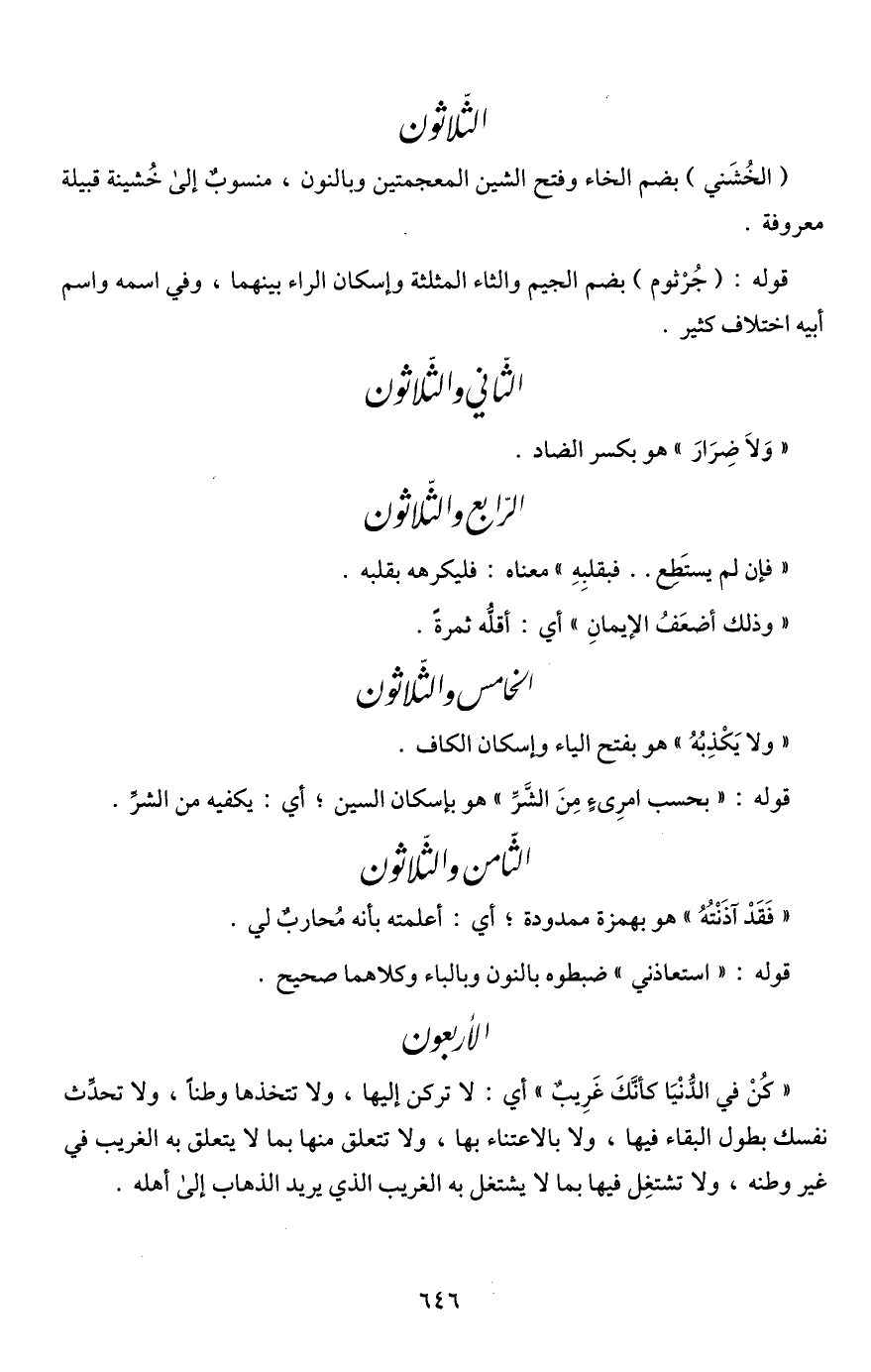 " كُنْ في الدُّنْيَا كأنَّكَ غَرِيبٌ" أي: لا تركن إليها، ولا تتخذها وطنًا، ولا تحدِّث نفسك بطول البقاء فيها، ولا بالاعتناء بها، ولا تتعلق منها بما لا يتعلق به الغريب في غير وطنه، ولا تشتغِل فيها بما لا يشتغل به الغريب الذي يريد الذهاب إلى أهله.