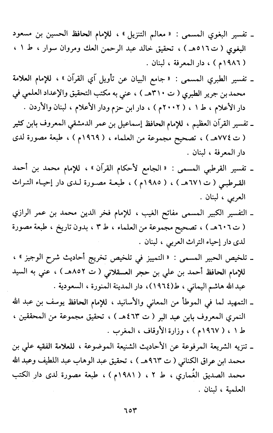 - تفسير الطبري المسمى: "جامع البيان عن تأويل آي القرآن"، للإمام العلامة محمد بن جرير الطبري (ت 310 هـ)، عني به مكتب التحقيق والإعداد العلمي في دار الأعلام، ط 1، (2002 م)، دار ابن حزم ودار الأعلام، لبنان والأردن.