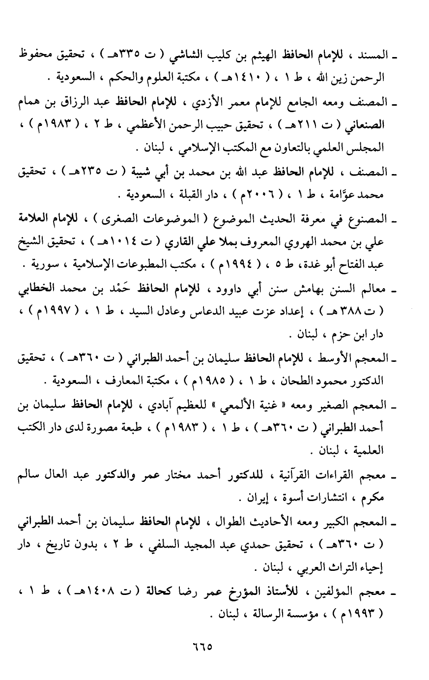 - المصنوع في معرفة الحديث الموضوع (الموضوعات الصغرى)، للإمام العلامة علي بن محمد الهروي المعروف بملا علي القاري (ت 1014 هـ)، تحقيق الشيخ عبد الفتاح أبو غدة، ط 5، (1994 م)، مكتب المطبوعات الإسلامية، سورية.