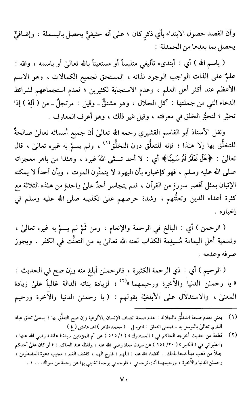 (¬1) يعني بعدم صحة التخلُّق بالجلالة: عدم صحة اتصاف الإنسان بالألوهية وإن صح التعلُّق بها؛ بمعنى تعلق عباد الباري تعالى بالتوسل به، فمعنى التعلق: التوسل. (محمد طاهر) اهـ هامش (غ).