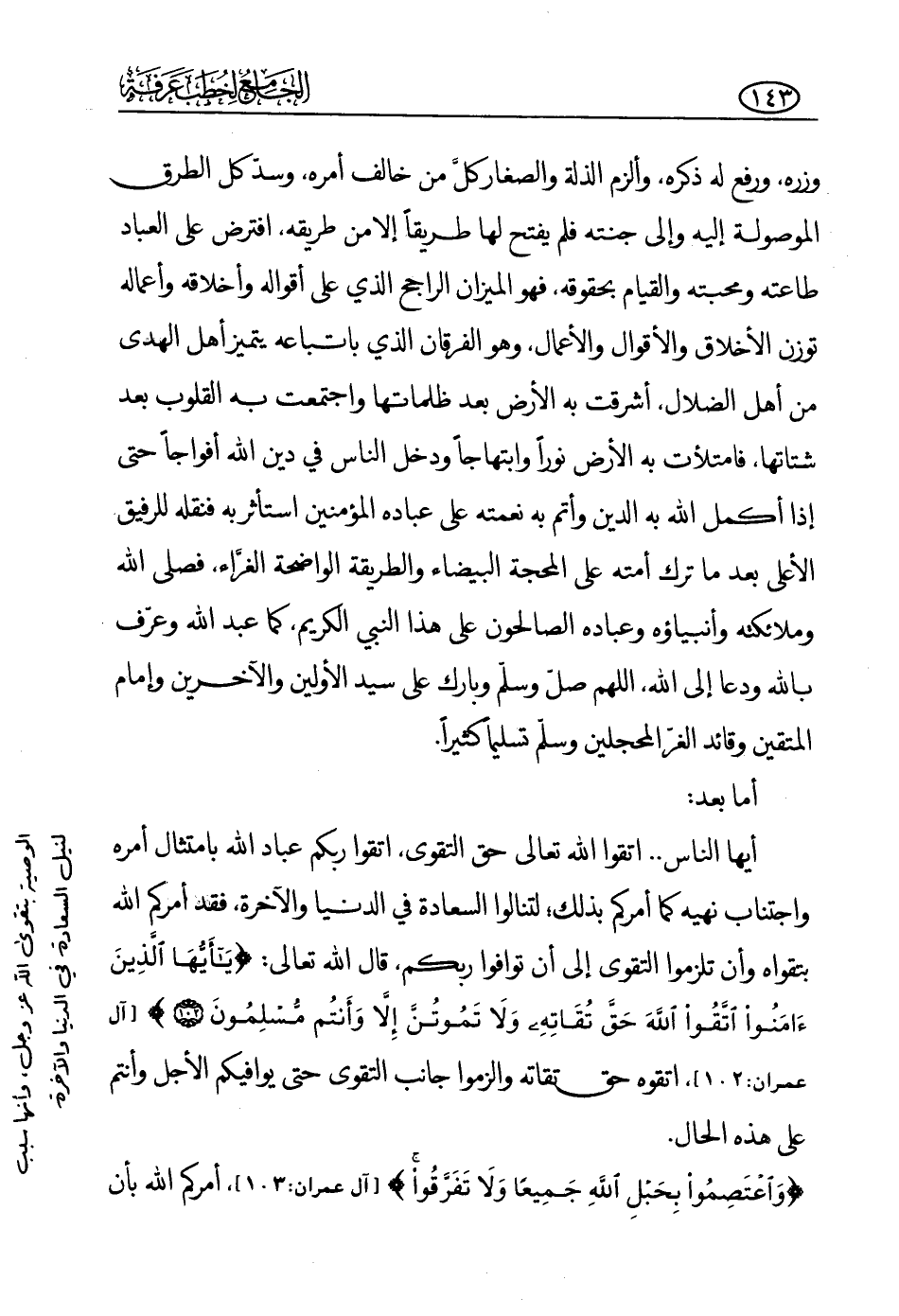 “ الوصية بتقوى الله -عز وجل-، وأنها سبب لنيل السعادة في الدنيا والآخرة “